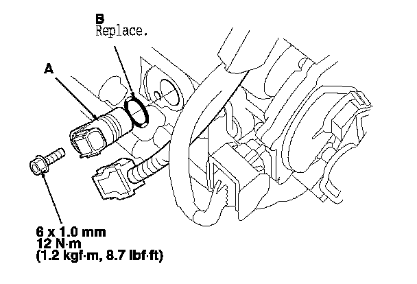 3. Install a new O-ring (B) on a new input shaft (mainshaft) speed sensor, then install the input shaft (mainshaft) speed sensor.