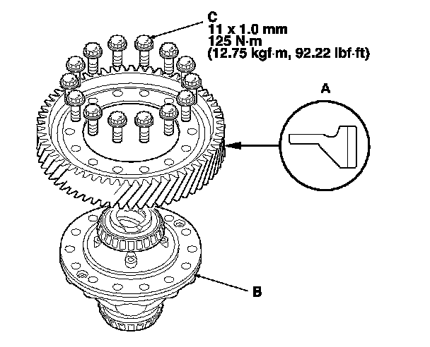 NOTE: The final driven gear bolts (C) have left-hand threads.