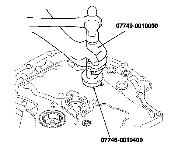 3. Drive the bearing into the torque converter housing using the driver handle and the 52 x 55 mm attachment.