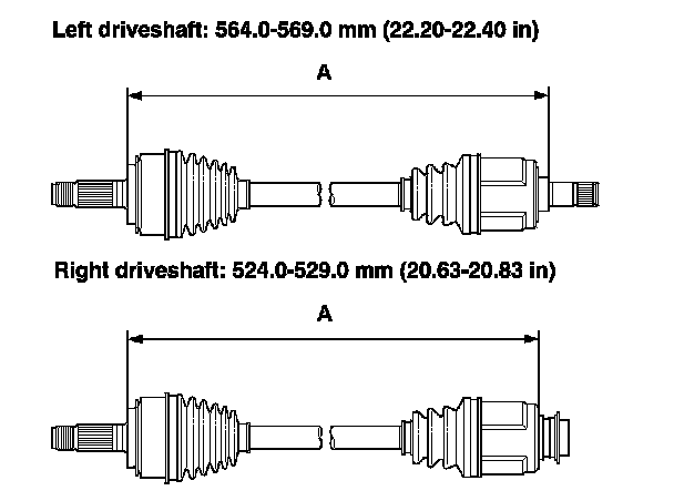 11. Inspect the length (A) of the driveshafts to the figure as shown, then adjust the boots to halfway between full compression and full extension.