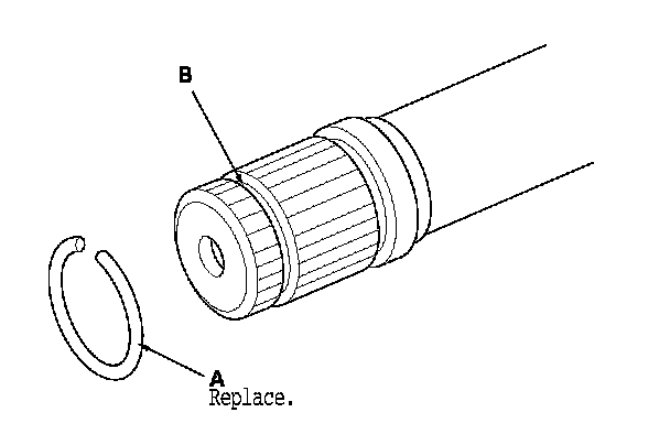 4. Install the stop ring (A) into the driveshaft groove (B).