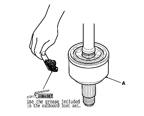 9. Pack the outboard joint (A) with the remaining joint grease included in the new outboard boot set.