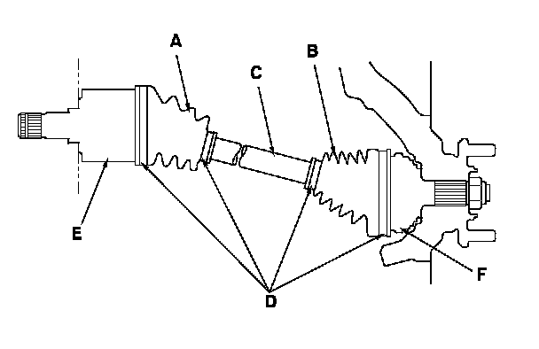3. Check the inboard joint (E) and the outboard joint (F) for cracks and damage. If any damage is found, replace the inboard joint or the outboard joint as an assembly.