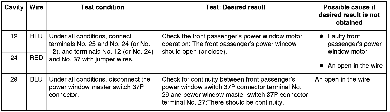 - If all the input tests prove OK, replace the front passenger's power window switch. Front Passenger's Power Window Switch Replacement