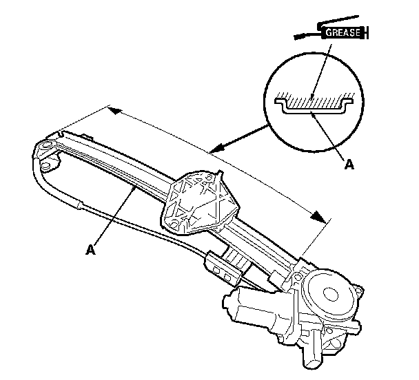 15. Apply multipurpose grease to all the sliding surfaces of the regulator (A) where shown.
