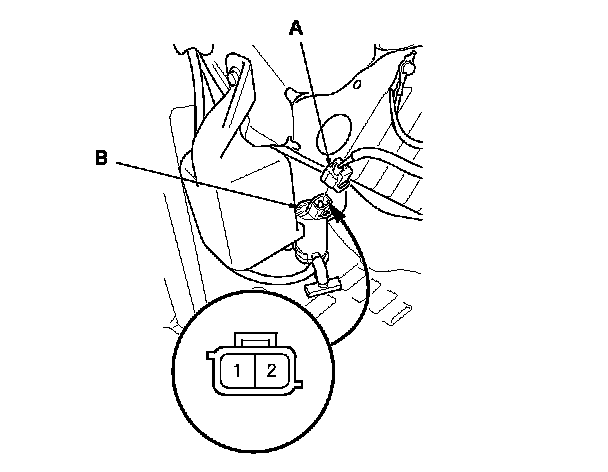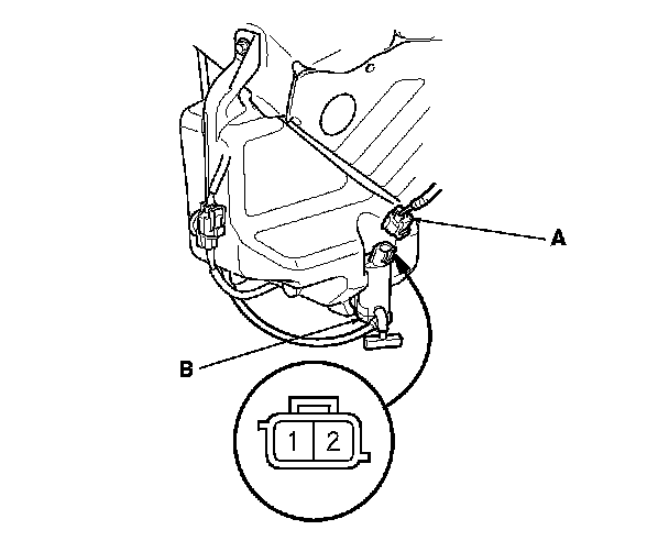 2. Disconnect the 2P connector (A) from the windshield washer motor (B).