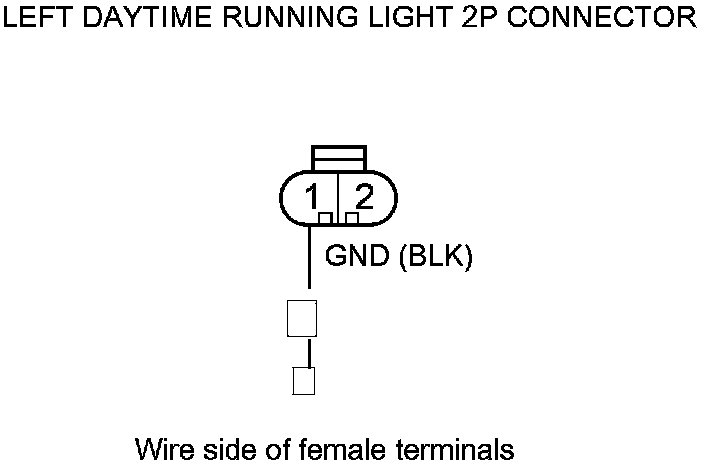 15. Check for continuity between left daytime running light 2P connector terminal No. 1 and body ground.