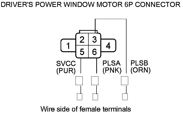 Test the driver's power window motor Driver's Power Window Motor Test. If the motor tests OK, go to step 4.
