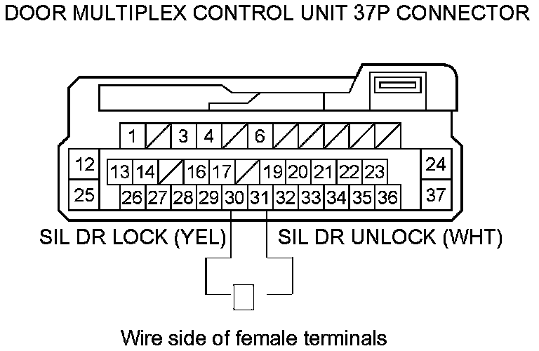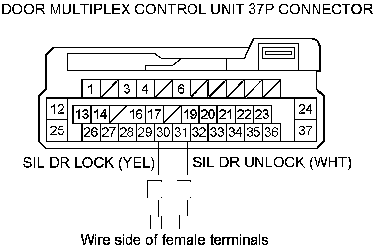 14. Check for continuity between door multiplex control unit 37P connector terminals No. 30 and No. 31.