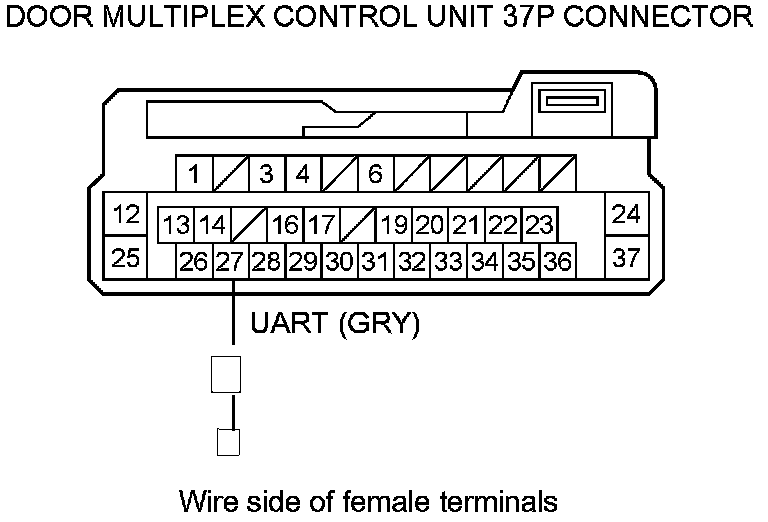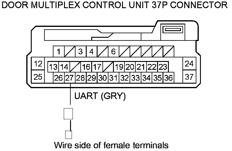 11. Check for continuity between door multiplex control unit 37P connector terminal No. 27 and body ground.