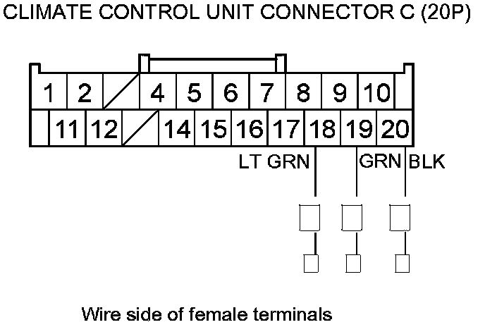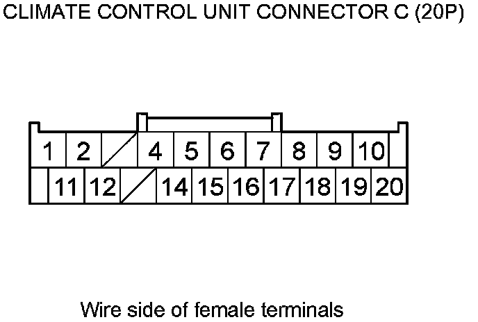 10. Check for continuity between body ground and climate control unit connector C (20P) terminals No. 18,No. 19, and No. 20 individually.