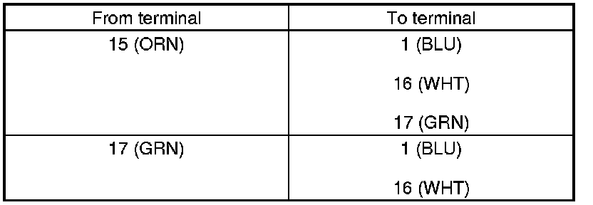 17. Check for continuity between driver's under-dash fuse/relay box connector R (24P) terminal No. 4 and terminals No. 15,No. 16, and No. 17 respectively.