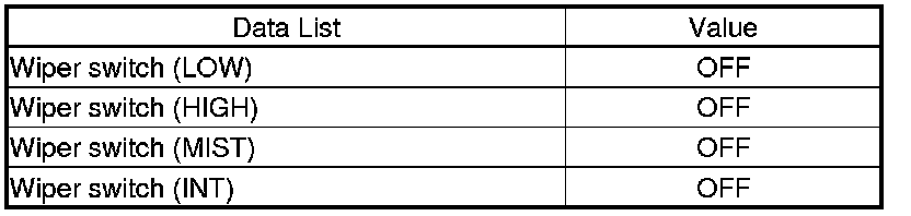 3. Turn the wiper switch to the MIST, INT, LOW, HIGH, and OFF positions, and wait for at least 6 seconds.