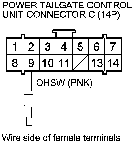 8. Disconnect power tailgate control unit connector C (14P).