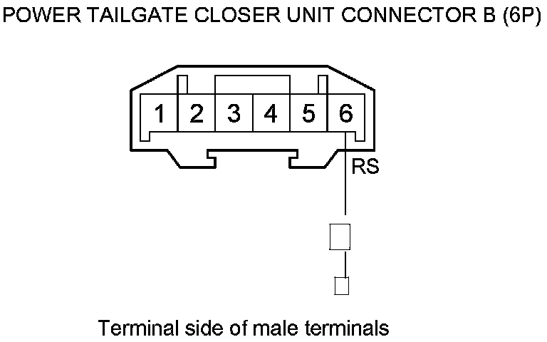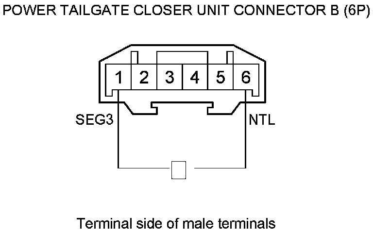 10. Check for continuity between power tailgate closer unit connector B (6P) terminals No. 1 and No. 6.