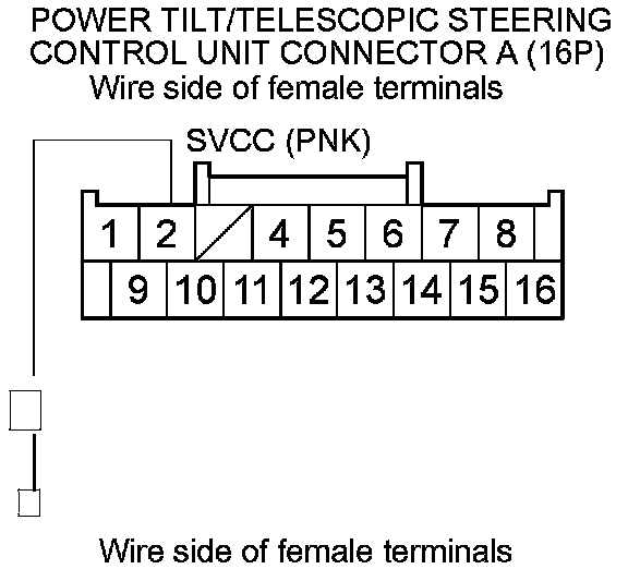 6. Disconnect power tilt/telescopic steering control unit connector A (16P).
