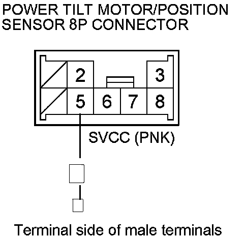 11. Check for continuity between power tilt motor/position sensor 8P connector terminal No. 5 and body ground (motor body).
