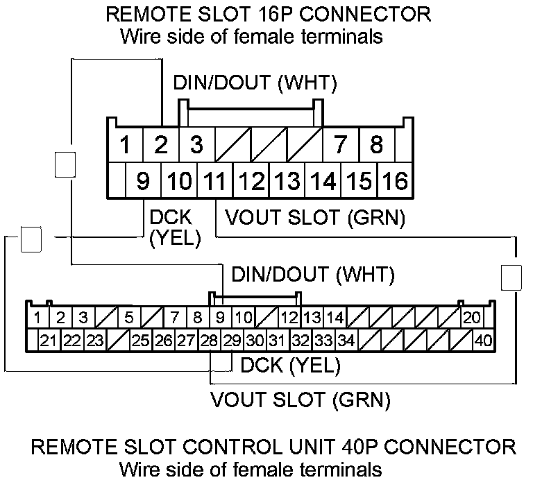 11. Check for continuity between remote slot control unit 40P connector terminals No. 9,No. 29, and No. 28, and remote slot 16P connector terminals No. 2,No. 9, and No. 11 respectively.