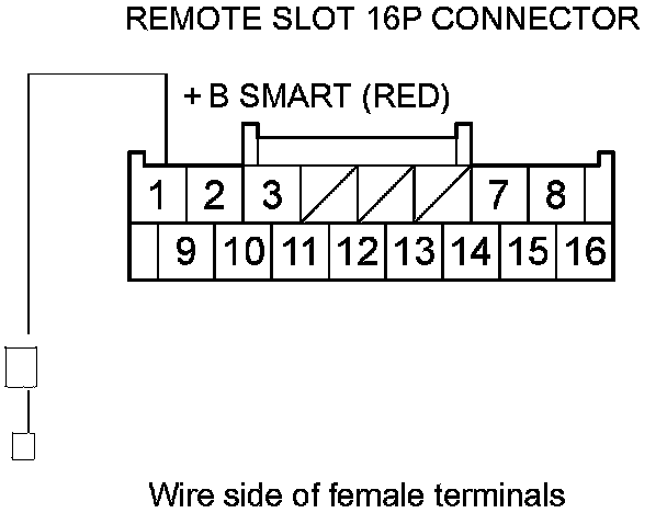 14. Measure the voltage between body ground and the remote slot 16P connector terminal No. 1.