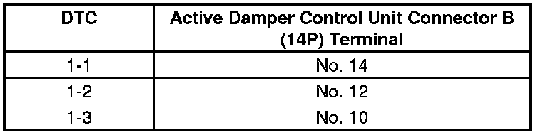 Active Damper System DTC Troubleshooting: 1-1, 1-2, 1-3