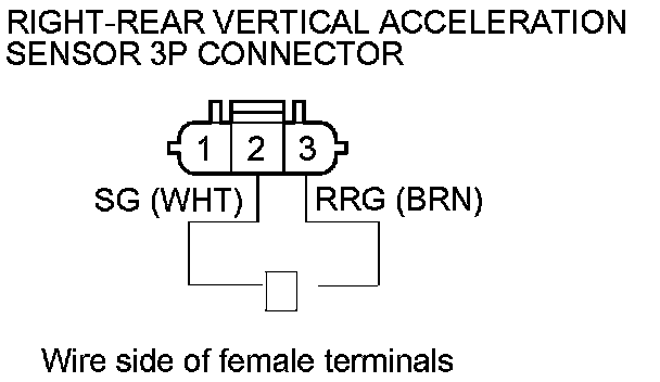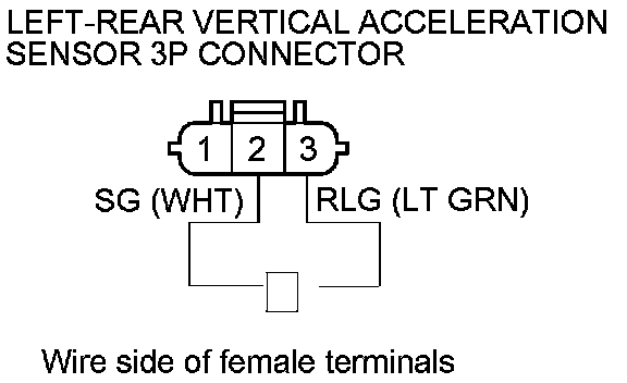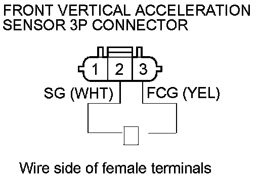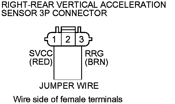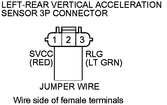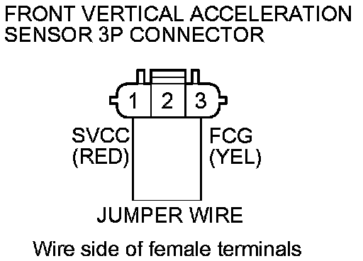 12. Connect appropriate vertical acceleration sensor 3P connector terminals No. 1 and No. 3 with a jumper wire.