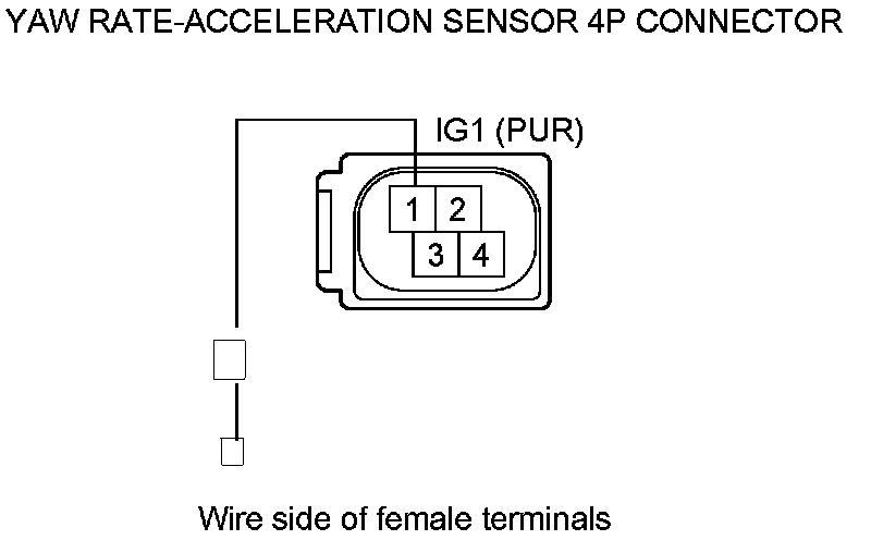 4. Measure the voltage between body ground and yaw rate-acceleration sensor 4P connector terminal No. 1.