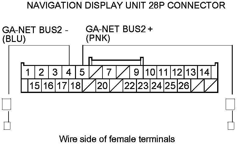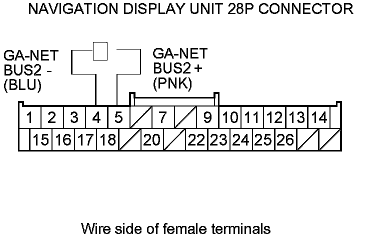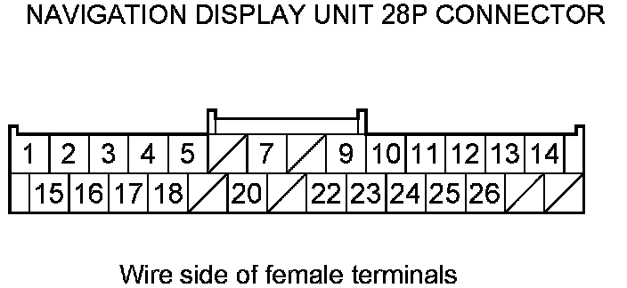 11. Check for continuity between navigation display unit 28P connector terminals according to the table.