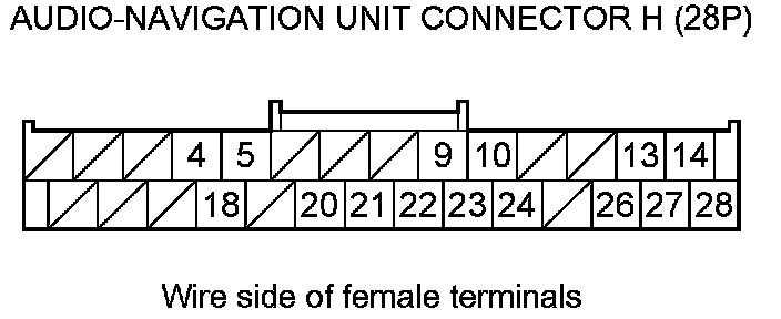 14. Disconnect AcuraLink control unit (XM receiver) connector A (32P) and audio-navigation unit connector H (28P).