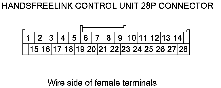 12. Check for continuity between HandsFreeLink control unit 28P connector terminals according to the table.