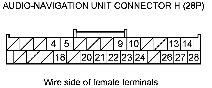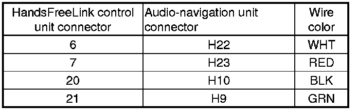 13. Check for continuity between the HandsFreeLink control unit 28P connector terminals and audio-navigation unit connector H (28P) terminals according to the table.