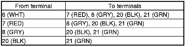 14. Check for continuity between HandsFreeLink control unit 28P connector terminals according to the table.