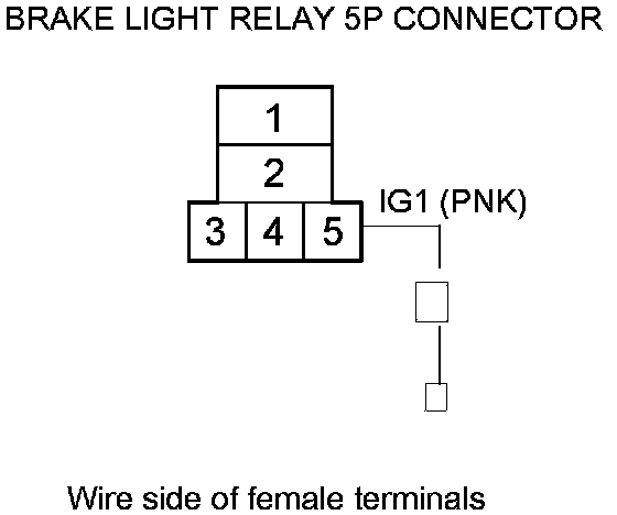 24. Measure the voltage between brake light relay 5P connector terminal No. 2 and body ground. There should be battery voltage.