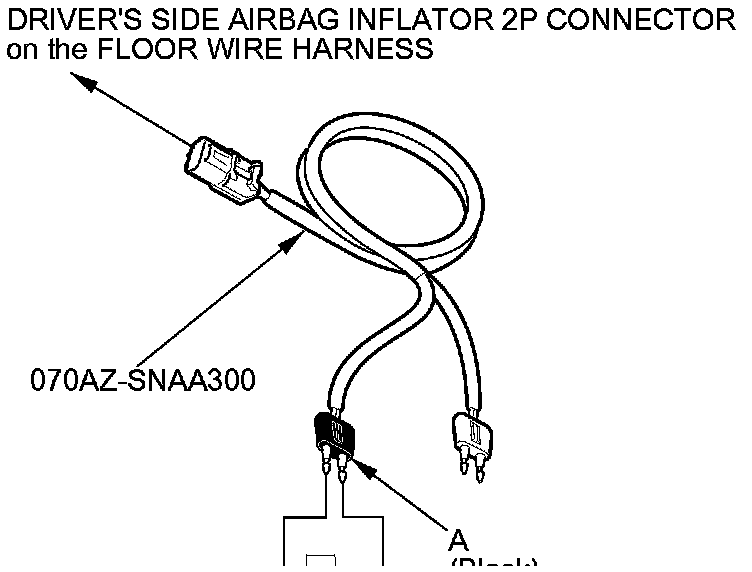 6. Disconnect the driver's side airbag inflator 2P connector (A) on the floor wire harness.