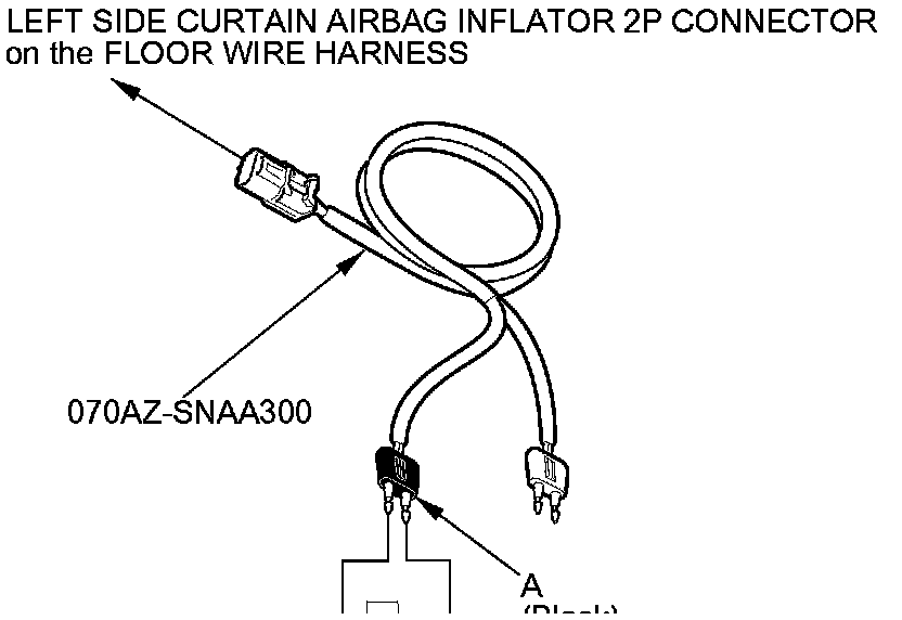 7. Disconnect the left side curtain airbag inflator 2P connector (A) on the floor wire harness.