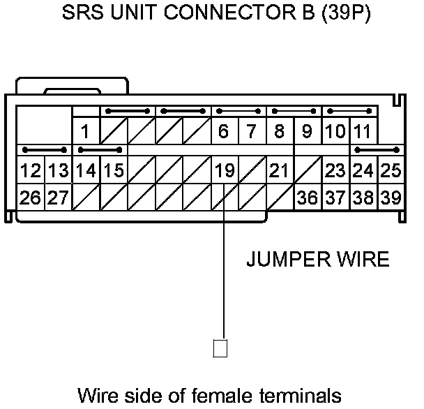 6. Install a jumper wire between SRS unit connector B (39P) terminal No. 19 and body ground.