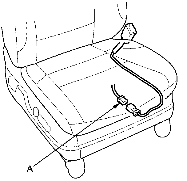 6. Disconnect the front passenger's seat belt buckle switch 2P connector (A) on the front passenger's seat wire harness.