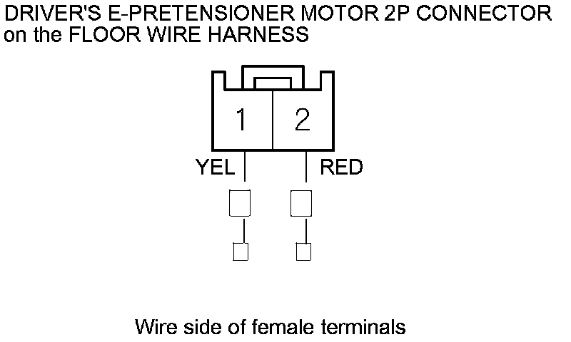 6. Disconnect the driver's E-pretensioner motor 2P connector on the floor wire harness Front Seat Belt Replacement.