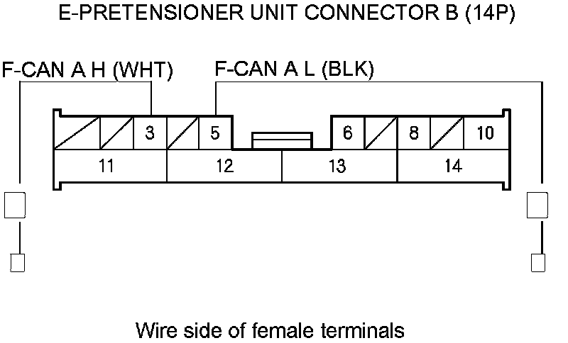 13. Disconnect E-pretensioner unit connector B (14P) from the E-pretensioner unit Removal and Replacement.