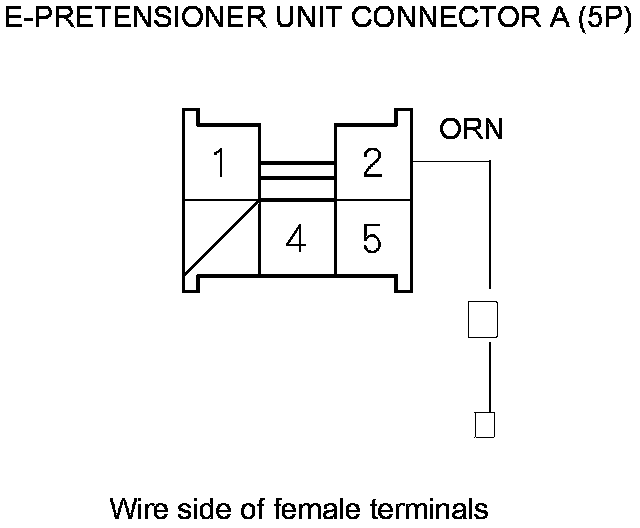 12. Measure the voltage between body ground and E-pretensioner unit connector A (5P) terminal No. 2. There should be battery voltage.