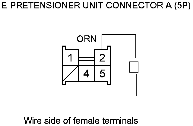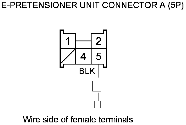 17. Measure the voltage between body ground and E-pretensioner unit connector A (5P) terminal No. 2. There should be battery voltage.