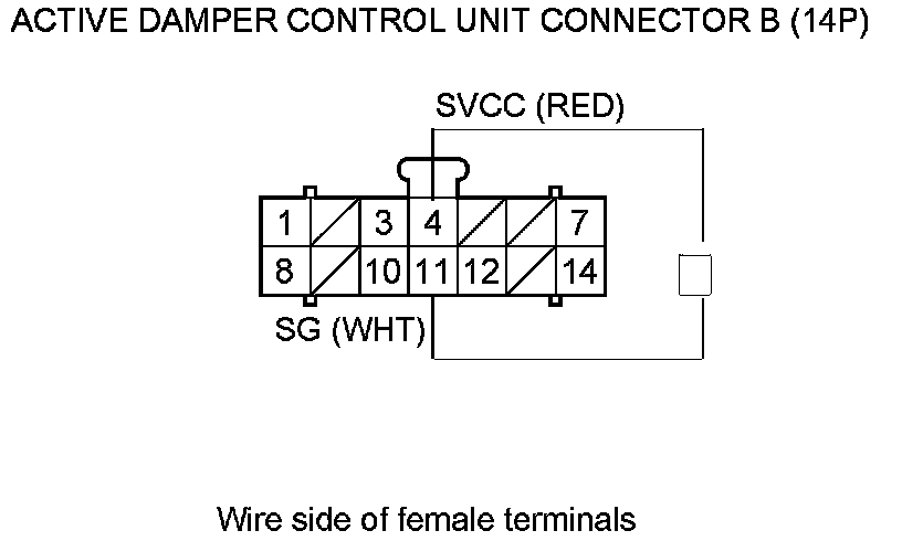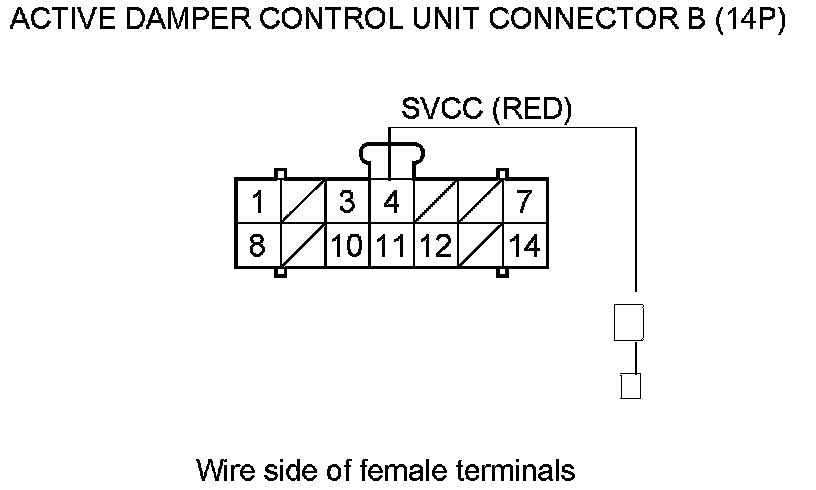 44. Check for continuity between active damper control unit connector B (14P) terminals No. 4 and No. 11.