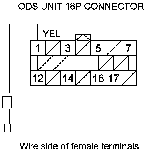 10. Measure the voltage between body ground and ODS unit 18P connector terminal No. 1. There should be battery voltage.