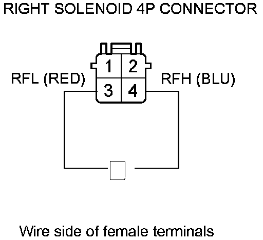7. Check for continuity between right solenoid 4P connector terminals No. 3 and No. 4.