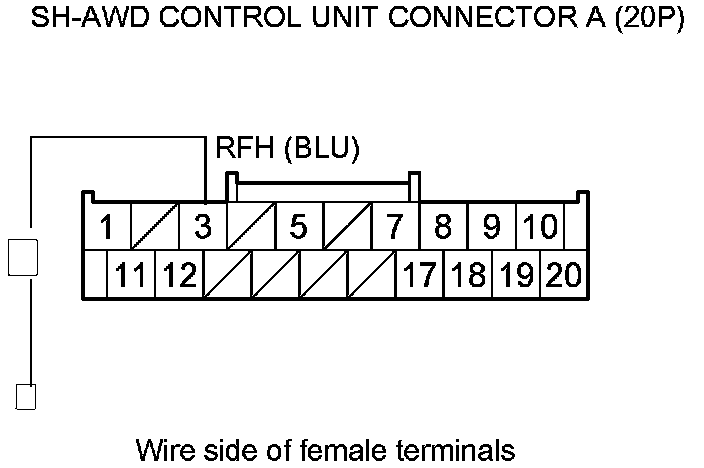 17. Check for continuity between SH-AWD control unit connector terminal A3 and body ground.