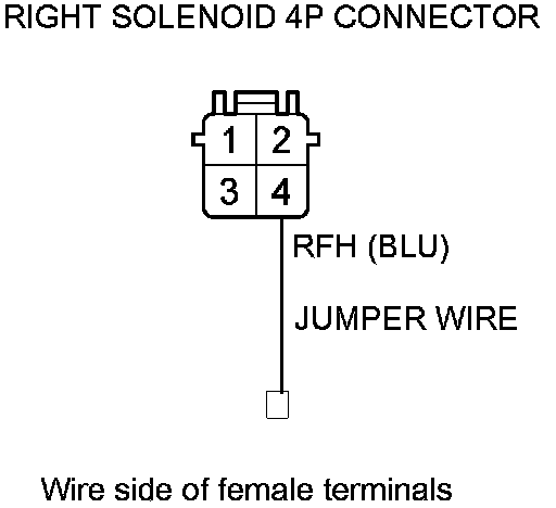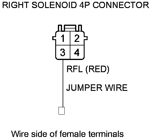 15. Remove the jumper wire from right solenoid 4P connector terminal No. 3.