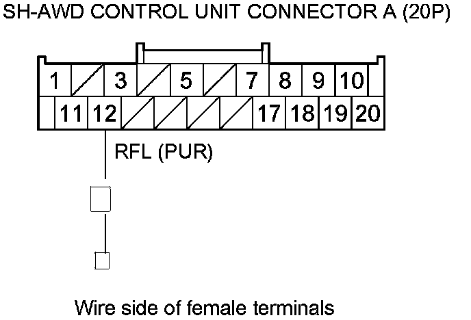 14. Check for continuity between SH-AWD control unit connector terminal A12 and body ground.