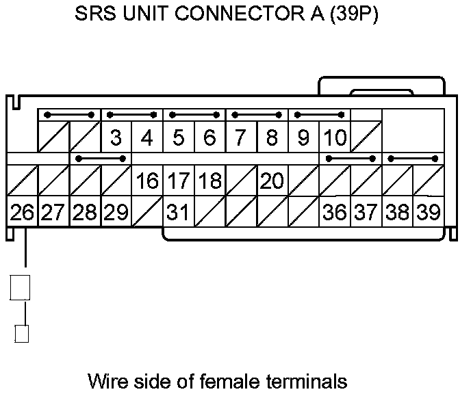 11. Measure the voltage between SRS unit connector A (39P) terminal No. 26 and body ground. There should be battery voltage.
