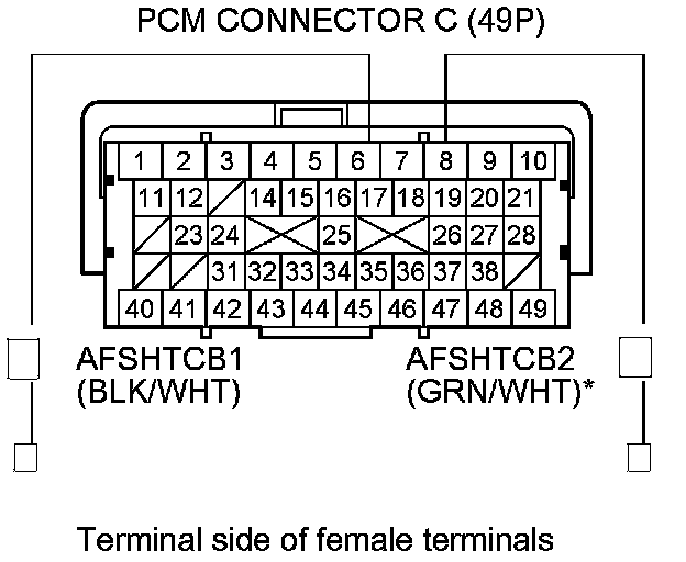 Check for poor connections or loose terminals at the A/F sensor (Sensor 1), the PGM-FI subrelay, and the PCM. If the PCM was updated, substitute a known-good PCM Initial Inspection and Diagnostic Overview, then go to step 34. If the PCM was substituted, go to step 1.