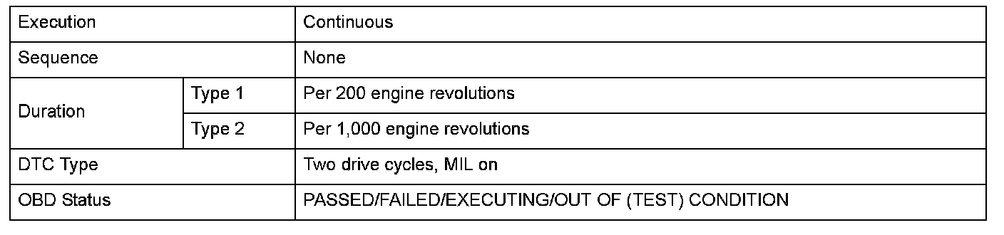 - 80 drive cycles, regardless of driving conditions, are completed with no misfire detected.