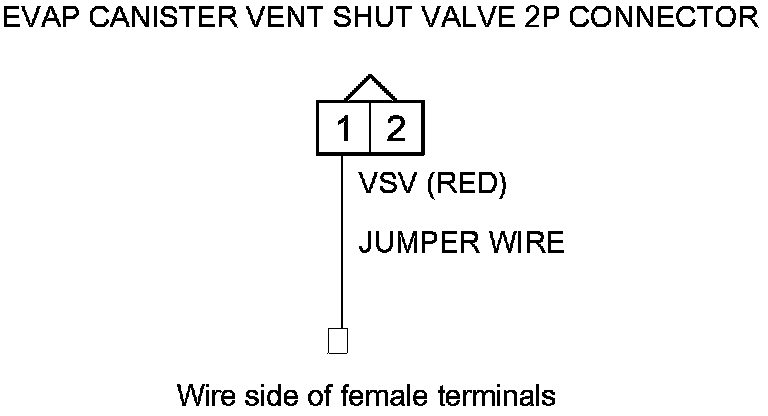 15. Connect EVAP canister vent shut valve 2P connector terminal No. 1 to body ground with a jumper wire.